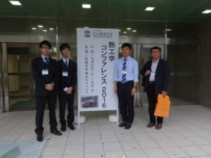 12月16日毎年恒例WD合同研究会(早稲田・電気通信)にて両校4年生の発表を行い、活発な討論を行いました。その後、居酒屋にて更なる研究発展のための意見交換会を行いました。12月9日某焼肉店にて開催された研究室忘年会の様子です。皆さん、今年も1年間お疲れ様でした。11月29日〜30日メルパルク京都にて開催されたNTHAS10にて学術発表を行ってきました。(上:海保、下:Zhan) 10月22日〜23日愛媛大学城北キャンパスにて開催された熱工学コンファレンス2016で学術発表を行ってきました。9月24〜25日に研究室合宿を行いました。